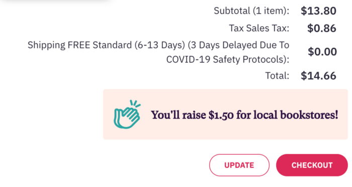 The most popular tactic I’ve found in B2C to remind customers of the contribution they’ve made to the charity the brand collaborates with. For example, before checkout, bookshop.org makes customers feel extra good about their choices by showing the contribution they’ve made to local bookstores.