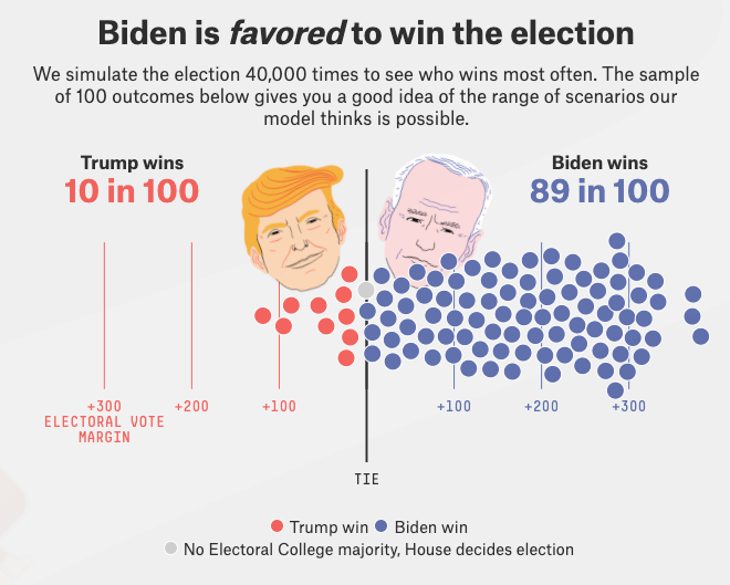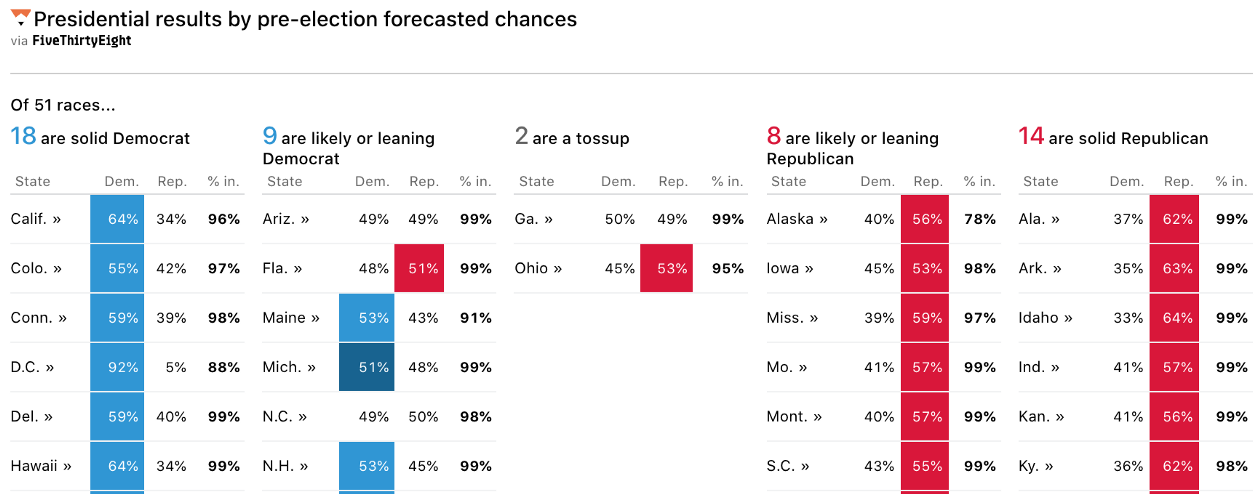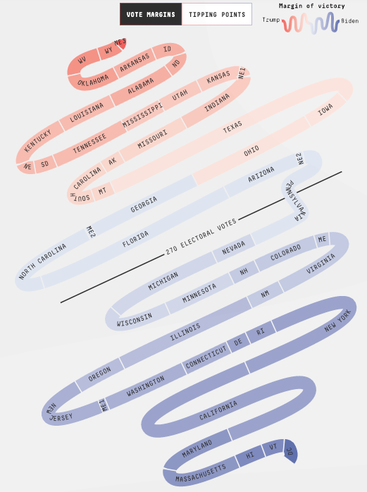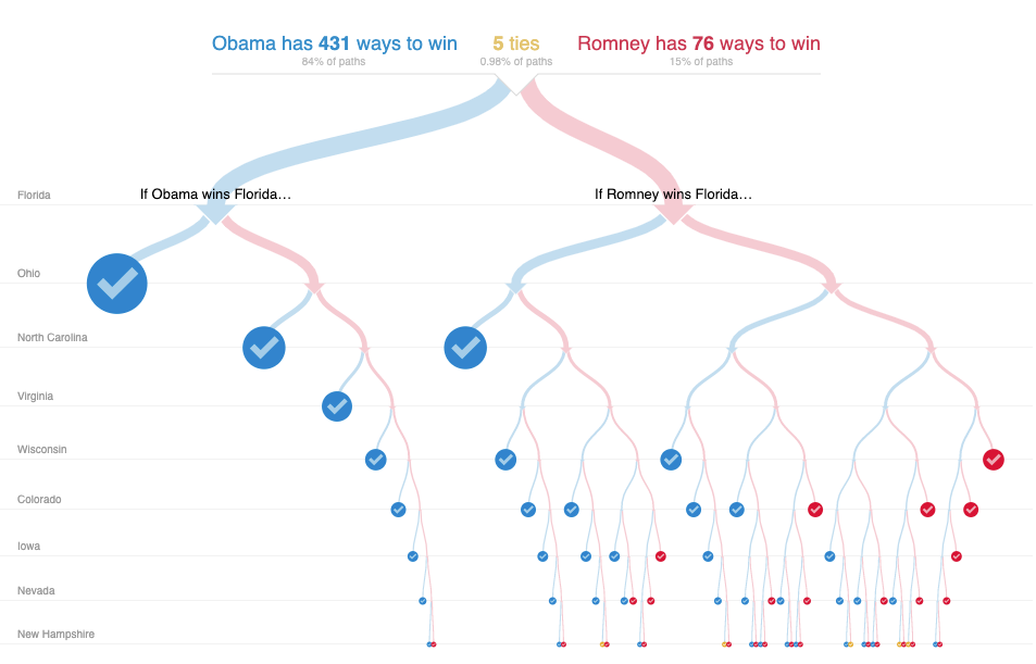 The ultimate goal of data visualizations is to support decision-making, in one form or another. And the often-neglected peril of data visualizations is that once data is represented in a visual format, it “attains a kind of literal concrete quality that makes one think it is accurate” (Colin Ware, Information Visualization). The 2016 election is a perfect example of how deemphasizing the uncertainty (margin of error) can lead people to wrong conclusions and make wrong decisions.